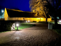 Attending this incredibly special Burns Supper made for one of the most memorable nights of my life. My husband Ian hired a kilt for the occasion, I had a tartan cape, and we arrived at the Burns Supper on a frosty night but felt grateful to be there at all, as Storm Éowyn had ripped through that part of Scotland only the day before, leaving a trail of destruction in its wake. The thirty guests were piped in to the cottage, enjoyed a delicious dinner (the haggis, served like a gateau with layers of tatties and neeps on top, and a whisky sauce around it, was really tasty), and listened to absolutely superb speeches. There was an ‘Ode to Burns’, of course the Ode to the Haggis was recited with aplomb, there was a ‘Letter from America’, the ‘Immortal Memory’ and then a thanks to all the speakers at the end. The music was amazing – a singer who made me cry with his glorious renditions of My Love is Like a Red Red Rose and Ae Fond Kiss, and a fiddler who played a fiddle that Burns himself played. The Gregg Fiddle usually lives in the Burns Museum, but was brought out that day to be played by one of only three musicians in Scotland permitted to play it. Hearing some of the 360 songs that Burns wrote being played on that beautiful instrument was an incredible treat. There were recitations of poems, jokes, fabulous company, and an almost electric atmosphere. What a privilege to sit in the simple cottage where the Bard was born and celebrate his 266th birthday. We ended with all singing Auld Lang Syne.